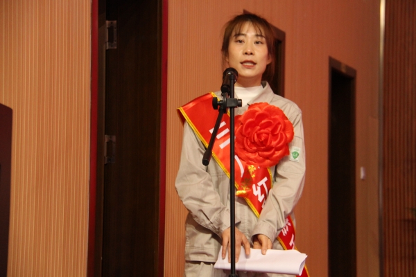 女職工代表楊芙蓉發(fā)言。她向集團(tuán)公司對廣大女職工們的關(guān)愛表示衷心的感謝,為企業(yè)給她們提供實現(xiàn)自身價值的廣闊平臺表示誠摯的謝意。她號召全體女職工共同努力,勇挑重?fù)?dān)、務(wù)實苦干,為開創(chuàng)金昱元更加輝煌燦爛的明天踔厲奮發(fā)、不斷前行。