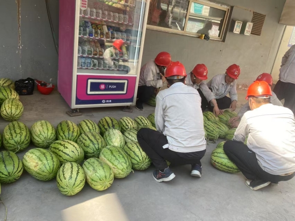 活動(dòng)期間,固原基地工會(huì)深入現(xiàn)場(chǎng),將防暑西瓜分發(fā)到職工手中,為身處高溫工作環(huán)境的職工送去陣陣清涼。同時(shí)對(duì)奮戰(zhàn)在一線的職工致以親切問候,并囑咐大家做好高溫防護(hù),鼓勵(lì)大家在繁忙的工作中積極發(fā)揮勞模精神、工匠精神,為高溫季節(jié)安全生產(chǎn)保駕護(hù)航。