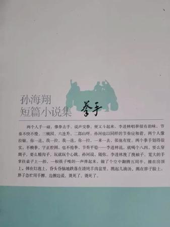 在文學(xué)日益式微的今天,仍有一些虔誠的信徒堅守在文化創(chuàng)作的金牧場,F(xiàn)供職于寧夏金昱元化工集團有限公司的孫海翔,二十年如一日始終在青銅峽市這片熱土上堅持著他的文學(xué)夢想。歷時半年,短篇小說集《拳手》終于出版。這是青銅峽市作家孫海翔出版的第一部書,共收入28篇短篇小說。